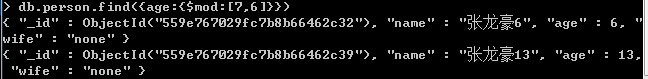 1、{age:{$mod:[7,6]}}:集合中模7余6的数据