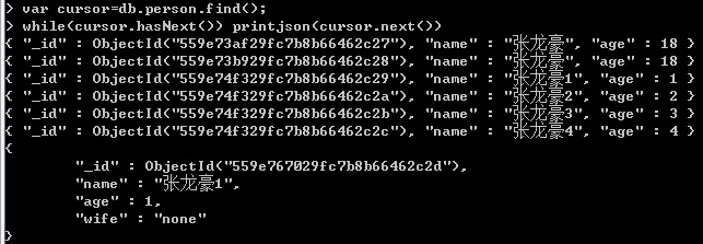 3、printjson:输出集合中的文档